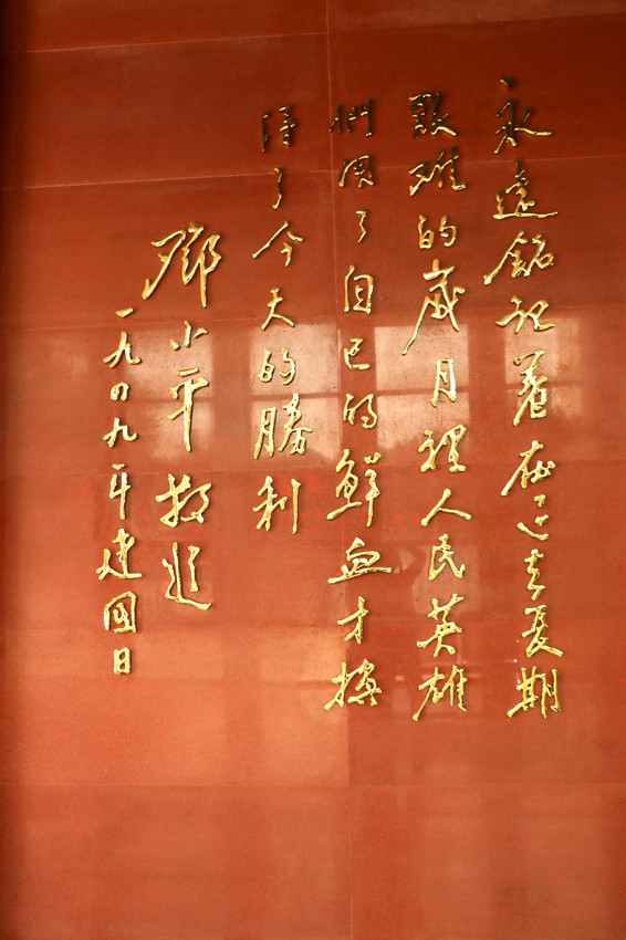 5、革命烈士紀念塔:位于劉鄧雕塑的北側(cè),塔高17.5米,建在海拔96米的羊頭上。正面為毛主席的題字“革命烈士紀念塔”,背面為劉元帥1952年為魯西南戰(zhàn)役的親筆題詞。